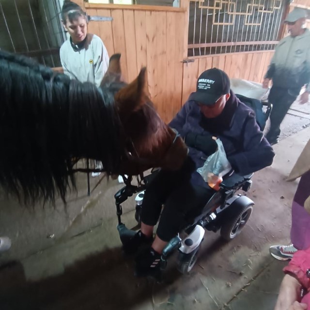 Для гостей комплекса была организована познавательная экскурсия по территории, знакомство с кроликами и лошадьми, а главное -иппотерапия, лечебная верховая езда.