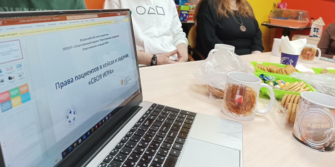 Основной частью встречи стала «Своя игра» на тему прав пациентов. Игра была предоставлена командой программы «Ответственный пациент. Ответственное поведение. Ответственная позиция НКО» Всероссийского союза общественных объединений пациентов (ВСП) при поддержке Фонда президентских грантов.