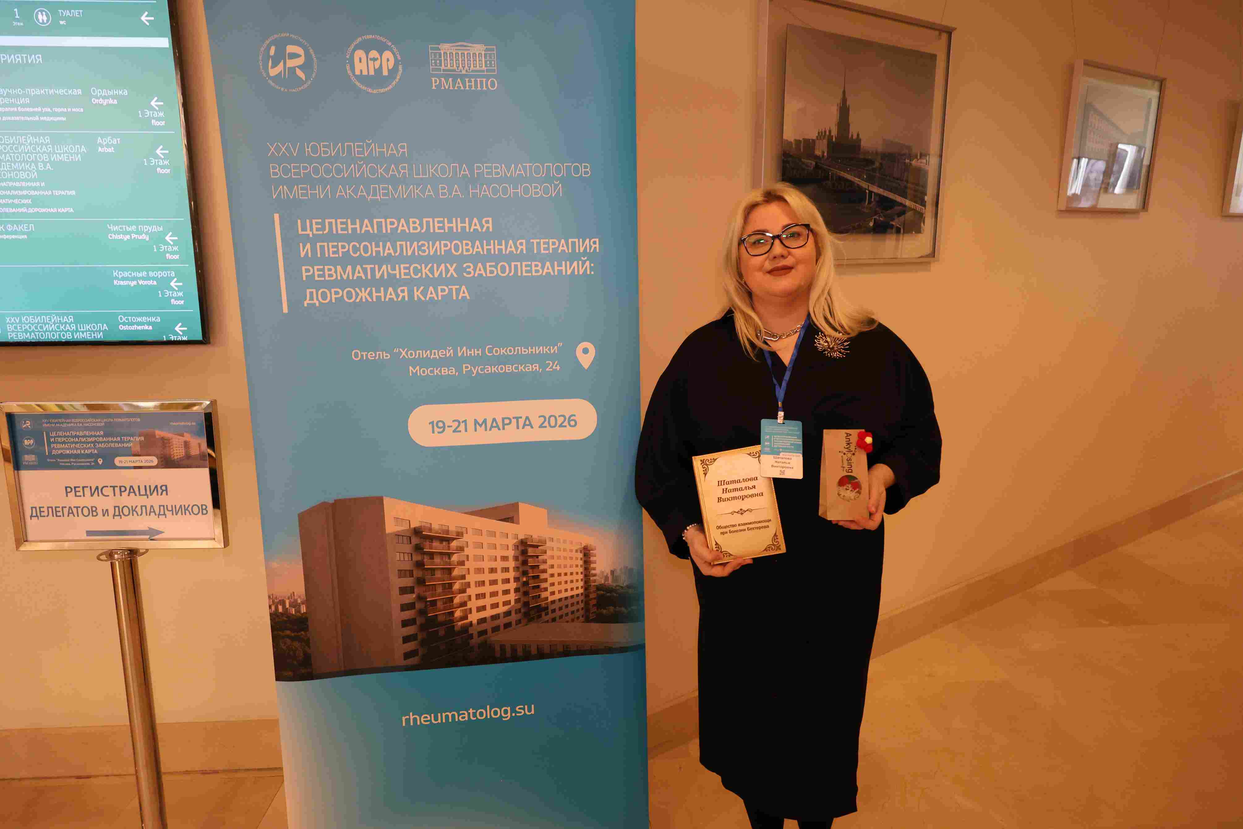 Вчера в Москве начала свою работу XXV Юбилейная всероссийская Школа ревматологов имени академика В.А. Насоновой «Целенаправленная и персонализированная терапия ревматических заболеваний: дорожная карта». В мероприятии, которое продлится до 21 марта, принимает участие директор Общества взаимопомощи при болезни Бехтерева Наталья Викторовна Шаталова.
